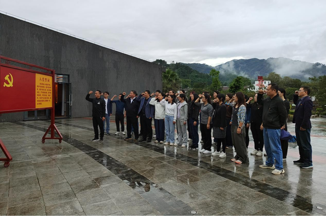 当日下午,全体党员前往位于仁化县城口镇的红军长征粤北纪念馆。在纪念馆广场,面对鲜红党旗,党员们整齐列队,重温入党誓词。铿锵誓言回荡在红色热土上空,彰显出外语商务学院全体党员不忘初心、牢记使命的坚定信念。