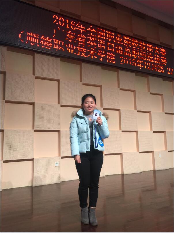 2015年12月26日至27日,2016年全国职业院校技能大赛暨广东省英语口语高职组选拔赛在顺德职业技术学院隆重举行。我院外语系经选拔,派出14级商务英语专业5班梁斯敏同学参加英语专业组比赛,并荣获二等奖(指导教师:黄晓燕,卢玥)。