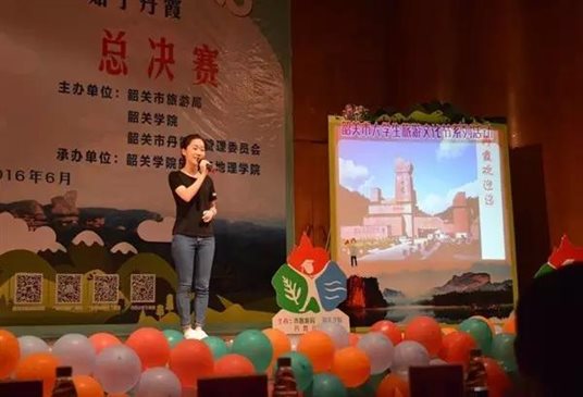 2016年6月3日晚,2016年韶关市大学生旅游文化节之“十佳导游服务技能竞赛”决赛在韶关学院音乐厅精彩上映。本次大赛由韶关市旅游局、韶关学院以及韶关市丹霞山管理委员会共同主办,韶关学院旅游与地理学院承办,有来自广东松山职业技术学院、韶关学院、乳源中等职业技术学校、仁化中等职业技术学校和留学生方队共30余名选手参赛。经过海选、初赛、复赛等层层选拔,共有10名优秀选手进入决赛。10位选手通过丹霞山景点导游词讲解、导游知识问答、情景模拟、才艺表演以及丹霞山手信微视频宣传推广等五个环节展现各自风采。我系2015级旅游英语2班杨采妮同学一路披荆斩棘,最终勇夺本次大赛“银牌导游”荣誉称号。