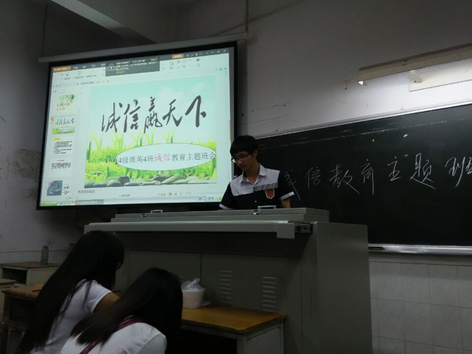 如果失去了诚信,同学,舍友之间失去了信任;如果失去了诚信,一切将如纸上谈兵。本次关于诚信教育活动,特别是“小信诚·大信立”为主题的班会开得很成功。在开展活动之后,大家开始不约而同地关注诚信,关注自己的行为,关注周围的小事。相信通过一段时期的努力和培养,同学们在以后会将自己的承诺付诸于行动,做一个诚实的人,一个坦率的人,一个优秀的人。