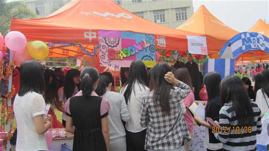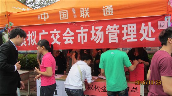 外语系“首届模拟广交会”是我院首届商务文化节的重要组成部分,由外语系商务英语教研室统筹策划,于本月27日早上举行了“首届模拟广交会”表演赛,主要有卖家产品宣传广告表演和买家异域风情秀;并于28日在桂园门口盛大举行。