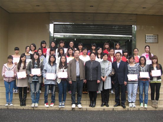 在2012年10月举行的学院首届商务文化节中,由外语系旅游英语教研室承办的中国旅游城市与民俗风情展以其独特的旅游文化和丰富多彩的活动形式吸引了广大师生的眼球。同学们也以其出色的讲解和专业的咨询赢得了观众们的肯定和赞扬。经过专业指导教师的现场评分结果,此次活动共选出最佳讲解员20名,最佳咨询员4名,优秀讲解员20名,优秀咨询员4名,颁奖优秀组织奖2项。为了总结此次活动经验和表彰获奖同学和班级,11月22日下午外语系于厚A503举行学院首届商务文化节之中国旅游城市与民俗风情展总结表彰会。出席本次大会的有外语系副主任杨守霞同志、外语系副书记叶采飞同志、旅游英语教研室的指导老师以及全体获奖同学。