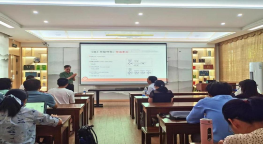 为更好推进学院教师教育科研发展,提升教学研究能力,9月21日,外语商务学院在厚A102教室成功举办了“外语教学实验设计与统计方法”专题讲座。本次讲座邀请韶关学院学术委员会委员、外国语学院院长、学科带头人阚哲华教授主讲。讲座由学院副院长李之松主持。学院全体教职员工齐聚一堂,认真聆听阚教授的讲座。