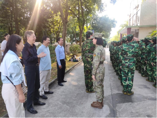 为了了解新生军训情况,10月25日,外语商务学院院长蒋澄生、党总支副书记(主持工作)高恒冠、副院长李之松及新生辅导员等一行来到军训场,看望慰问学院全体参训新生。