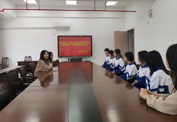 参观后,外语商务学院团队与两所中职学校的参会领导和教师团队进行了深入交流研讨,双方就旅游管理(三二分段)专业建设、招生就业、校企合作、中高职贯通培养合作等相关事宜展开了富有成效的交流,旨在加强交流合作,共享教育资源,发挥各自优势,携手推动专业人才培养高质量发展。