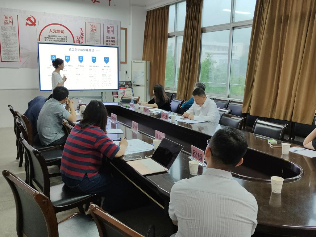 为进一步提升外语商务学院专业建设水平,推进专业信息化建设,我校外语商务学院于近日召开专业信息化升级研讨会。学院院长蒋澄生、北江学者杨文慧教授,商务英语、旅游管理、旅游英语、现代文秘、酒店管理与数字化运营专业负责人以及大学英语教研室主任、课程组组长等参加了会议。会议由副院长李之松主持。