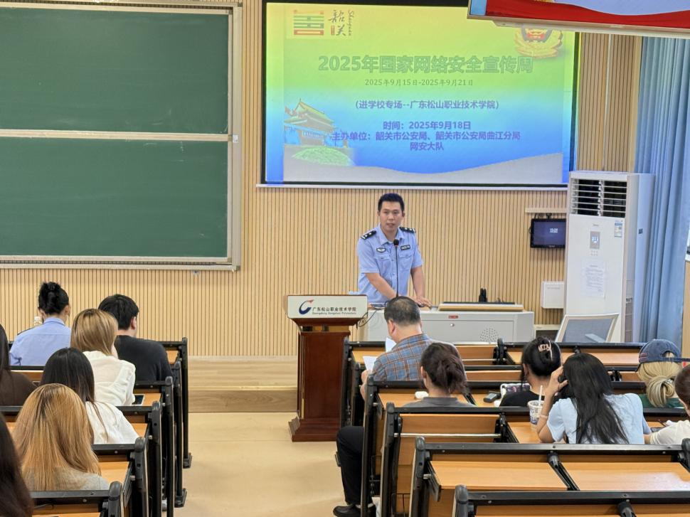 此次宣传讲座是韶关市公安局、韶关市公安局曲江分局网络安全大队主办的2025年国家网络安全宣传周的重要活动之一。本次活动通过反诈经验丰富的公安干警宣传教育,不仅增强了同学们的网络安全意识和自我防护能力,也进一步强化了警校交流协作机制,为构建平安校园奠定了坚实基础。