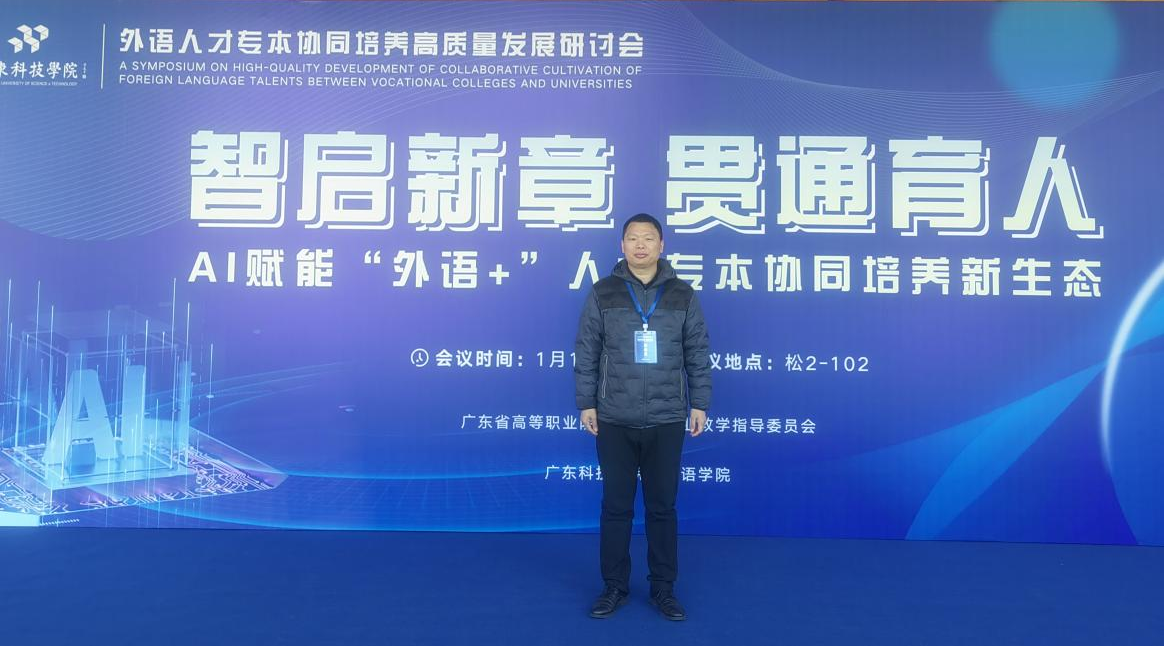 为探索外语人才培养新路径,推进专业建设与教学改革,1月10日,我校外语商务学院副院长、广东省职业学校外语类专业教学指导委员会委员李之松赴广东科技学院参加“外语人才专本协同培养高质量发展研讨会”。来自全省高职院校外语类专业及相关机构的100余名代表参会,共同围绕AI赋能背景下“外语+”人才专本协同培养的创新机制与实践模式进行研讨。